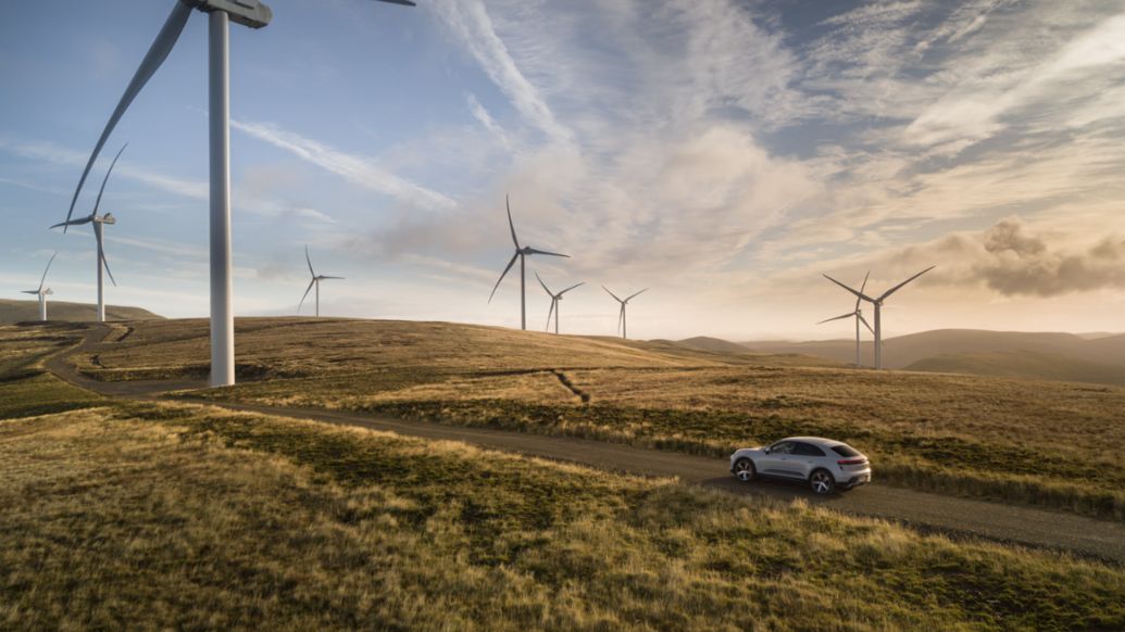 Porsche is supporting the development of wind and solar energy plants to cover the expected electricity demand of the Macan fleet based on a driving distance of 200,000 km at WLTP consumption.