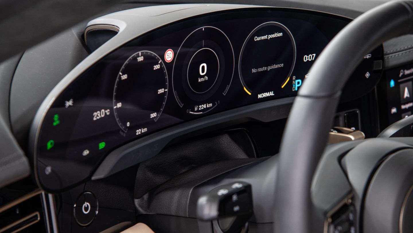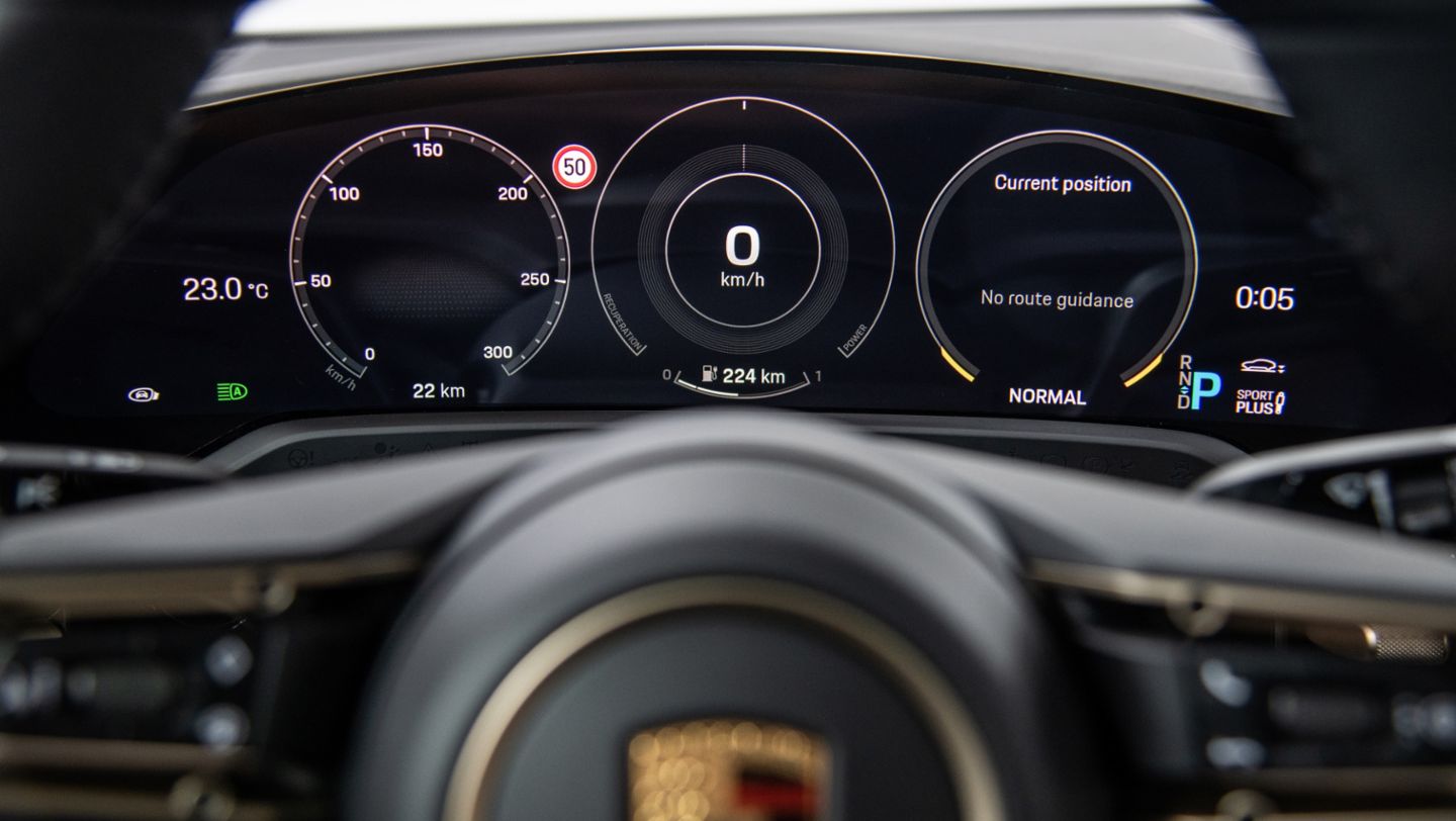 Multiple driving modes allow drivers to tailor their experience on the road. The different mode profiles follow the same philosophy as in other Porsche model series, but is supplemented by a special setting which maximizes efficient operation. The four driving modes that are available include “Normal”, “Sport”, “Sport Plus”, and “Range”. In addition, individual systems can be configured as required in the “Individual” mode.