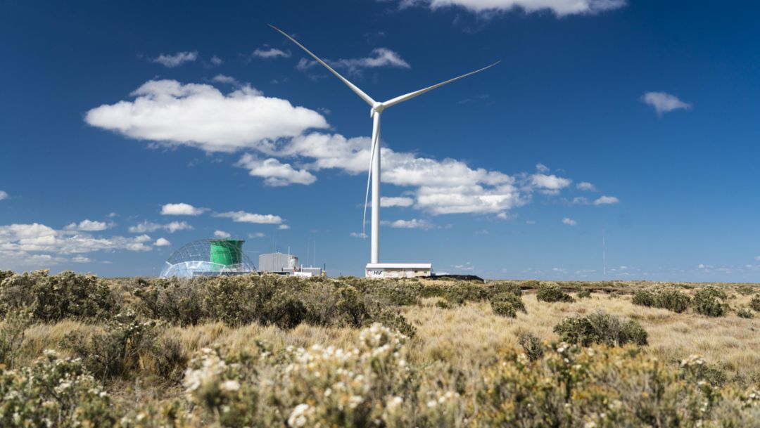 Karl Dums: Las fuentes de energía renovables no están distribuidas uniformemente en todo el mundo. En Alemania apenas tenemos, pero en otros lugares del mundo hay más de lo que pueden aprovechar localmente. Las mayores densidades de energía en forma de sol y viento se encuentran en las regiones desérticas y en otros lugares como el sur de Chile. Entonces, la energía que existe allí tiene que ser transportada a donde pueda ser utilizada. La producción de e-fuels lo hace posible. Porsche AG, en colaboración con HIF Global, Siemens Energy, ExxonMobil y otros socios internacionales, ha decidido construir la planta piloto Haru Oni en Punta Arenas, Chile. Allí aprovechamos las excelentes condiciones locales para explotar la energía eólica y así poder producir combustibles sintéticos.